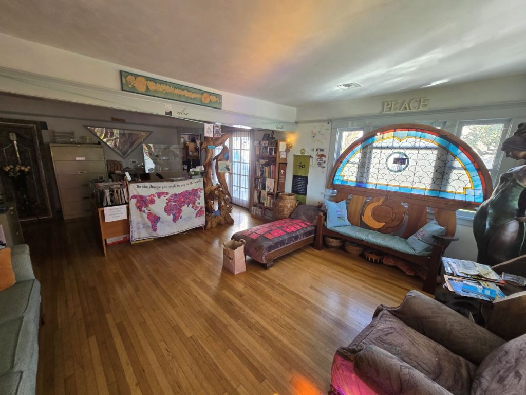 When you first enter the house you will feel relaxed and at home. There are books to read, artwork to admire, and a sign requesting you to take all phone calls outside. Instead of needless chatter, you will hear solar powered wind chimes, music, and the footsteps and humming of Dr. Betty. If you are lucky enough to find this house you will know immediately that you were meant to be here.